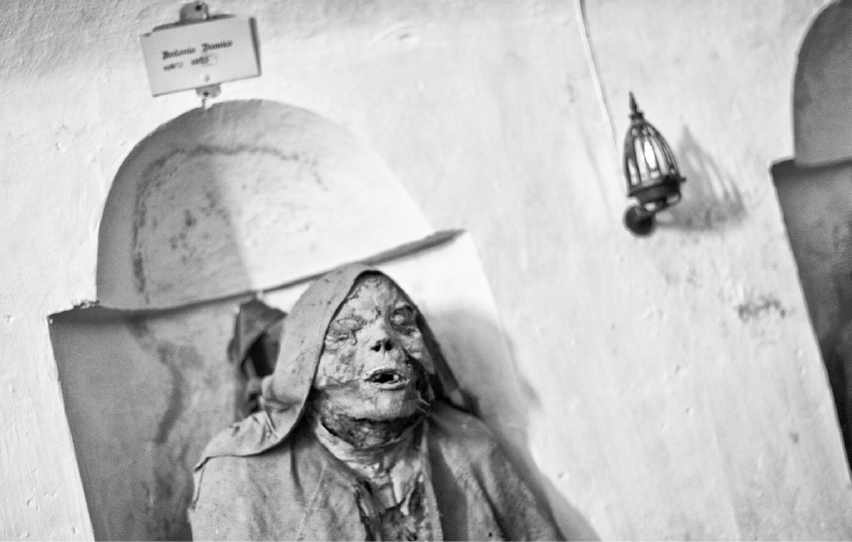 Un tempo (fino al 1594) sistemati lungo l’abside della basilica dei Frati predicatori di San Domenico Maggiore di Napoli, decine di sarcofaghi di nobili partenopei sono oggi conservati nel ballatoio della sacrestia barocca della stessa chiesa. Studiati a partire dal 1983[2] dallo storico della medicina e paleopatologo dell’Università di Pisa Gino Fornaciari e collaboratori, hanno rivelato la presenza di diverse mummie, sia di origine naturale, sia dovute a processi di imbalsamazione.[3]