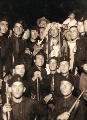 Giunse a fagiolo, come si dice, la visita di un importantissimo capotribù pellerossa: Cervo Bianco (White Elk) della Nazione Irochese, venuto in Europa per esporre presso la Società delle Nazioni le rivendicazioni del suo popolo; a Londra aveva pronunciato un applauditissimo discorso per sollecitare l’ammissione dei giovani nativi americani nelle università inglesi, a Parigi aveva tenuto affollatissime conferenze sugli usi e costumi della sua tribù, a Bruxelles aveva deposto solennemente una corona di fiori sulla tomba del Milite Ignoto.