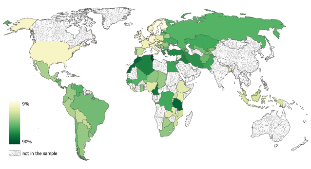 Lo studio ha esaminato una serie di sei indagini condotte tra il 2008 e il 2017 che hanno coinvolto più di 140.000 individui di 95 paesi. Agli intervistati sono state poste varie domande sui temi della magia, delle “fatture” (sortilegi, incantesimi…) e della stregoneria. In particolare, in ciascuna delle indagini è stata posta la seguente domanda: «Credi nel malocchio, o che certe persone possano lanciare maledizioni o incantesimi che causano cose brutte a qualcuno?». Oltre il 40% di tutti gli intervistati ha risposto di credere nella stregoneria, con tassi di prevalenza che variano dal 9% in Svezia al 90% in Tunisia. Complessivamente, afferma lo studio, un semplice calcolo basato sui dati della popolazione adulta produce quasi un miliardo di credenti solo nei 95 paesi del campione, ed è probabile che si tratti di una sottostima, data la delicatezza dell’argomento.