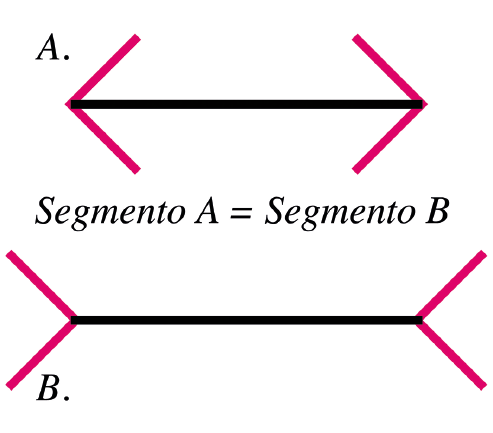 Certo, una linea retta è il percorso più breve tra due punti virtuali. Il contesto può però svolgere un ruolo chiave nell’interpretare la lunghezza di una linea retta. Un segmento può, infatti, apparire più lungo o più corto se racchiuso tra due parentesi angolari, le cui punte sono dirette verso l’esterno (fig. 1.a) o verso l’interno (fig. 1.b). Quest’illusione fu pubblicata dallo psicologo tedesco Franz Carl Müller-Lyer nel 1889 per dimostrare, appunto, la dipendenza di una lunghezza percepita dalle espansioni apicali.