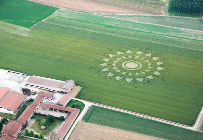 Il mio cerchio “Questononèuncerchio.” nasce come provocazione artistica rivolta ai believer, che non sono solo fruitori di queste opere, ma allo stesso tempo anche inconsapevoli artisti ed esponenti dell’ultramoderno surrealismo dei cerchi nel grano; utilizzano infatti queste forme misteriose per dare libero sfogo ai propri pensieri, parole e associazioni di immagini “in assenza di qualsiasi controllo esercitato dalla ragione, al di fuori di ogni preoccupazione estetica e morale”, per riprendere le parole del primo Manifesto surrealista del 1924. È un cerchio genuino quello che si vede nelle fotografie oppure no? Che cosa vuol dire genuino? Un’opera nel grano realizzata dagli uomini è genuina oppure no?