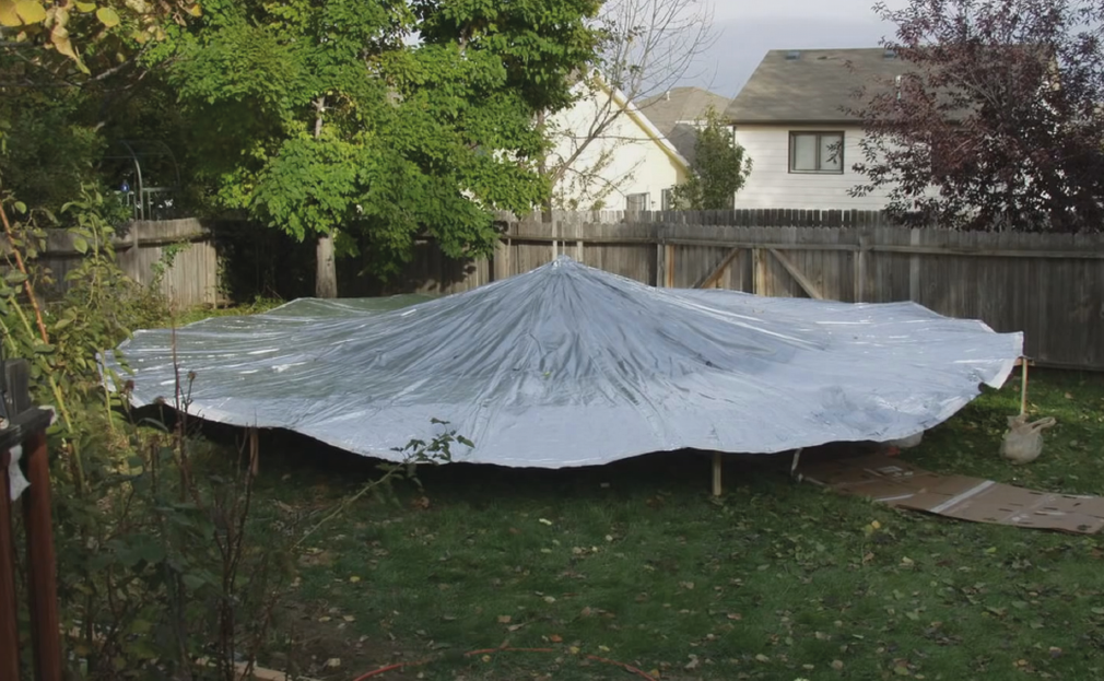 Immaginate di costruire un UFO casalingo dal diametro di 6 metri e alto un metro e mezzo, in sostanza un pallone a forma di disco volante, da gonfiare a elio con un cestello alla base fatto di compensato e cartone in grado di contenere un bimbo di 6 anni.