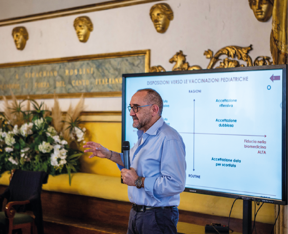 Capire i genitori che appartengono a questa fascia è dunque fondamentale per garantire la salute pubblica, ha spiegato al CICAP Fest Mario Cardano, professore ordinario in sociologia della salute all’Università di Torino, che ha effettuato sul tema un’estesa ricerca che ha coinvolto sette paesi, focalizzandosi sull’analisi dell’esitazione vaccinale nei neogenitori attraverso la cornice della fiducia medico-paziente. «Lo studio ha avuto in primo luogo lo scopo di individuare il modo in cui i genitori si dispongono nei confronti della vaccinazione pediatrica», ha raccontato il docente, illustrando i risultati e le metodologie della ricerca. «L’elemento di incertezza è legato alla complessità del sapere immunologico e anche all’insieme di pressioni societarie legate alla vaccinazione. Questi aspetti, uniti alla necessità di essere genitori informati, possono instillare sentimenti di vulnerabilità e condurre a un atteggiamento esitante. Esiste, poi, un possibile ruolo ricoperto da Internet, soprattutto nella sua capacità di funzionare da cassa di risonanza (echo chamber) e di condurre talvolta a una polarizzazione del pensiero». Sono tutti aspetti, secondo il docente, che devono spingere a considerare la complessità del tema e i diversi fattori coinvolti. «Un altro tema centrale è la fiducia», ha poi sottolineato Cardano, « in quanto costituisce l’insieme di aspettative positive elaborate in un contesto di incertezza e vulnerabilità che caratterizza buona parte della relazione tra paziente e personale sanitario».