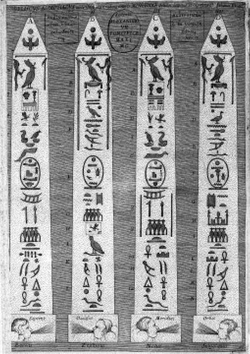 Il secondo, forse più famoso, “traduttore di geroglifici” fu nel XVII secolo il gesuita tedesco Athanasius Kircher, che sulla scia di Orapollo, pubblica nel 1643 il suo Lingua Ægyptiaca restituta. Kircher compie la fondamentale scoperta della derivazione del copto dalla lingua egizia antica, ma attribuisce ai segni geroglifici un valore simbolico, che rende necessario per il traduttore un atteggiamento più simile a quello dell’iniziato che del linguista: peccato forse mortale per un filologo moderno, ma perfettamente in linea con il pensiero dell’età barocca.